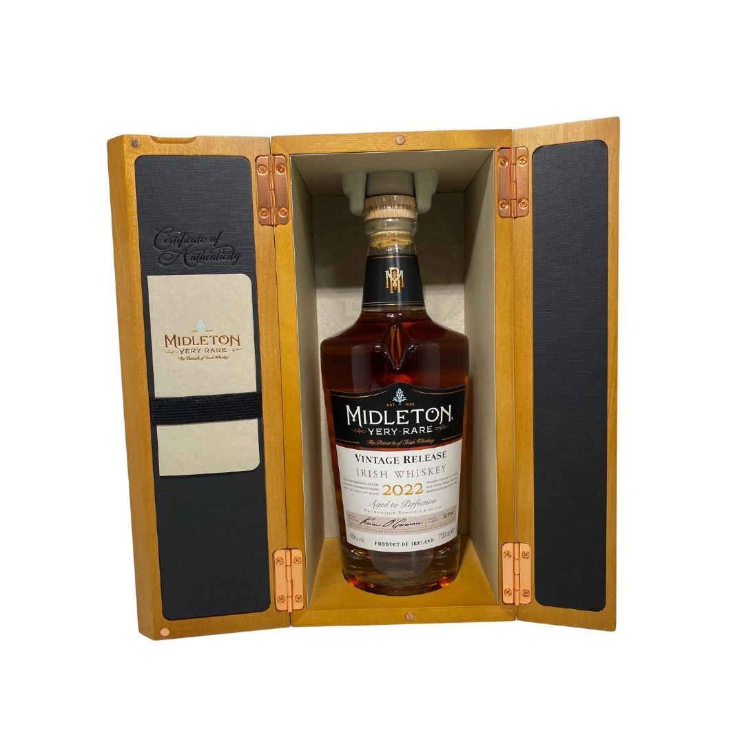 The 2022 edition to Ireland's most premium and beloved whiskey series; Midleton Very Rare. This is the 39th installment and the second release under Kevin O' Gorman appointed Master Distiller of the Midleton Distillery in 2020. Both the bottle and gift box are in very good condition, certificate and distillery invite are also included. Bottle number 13457
