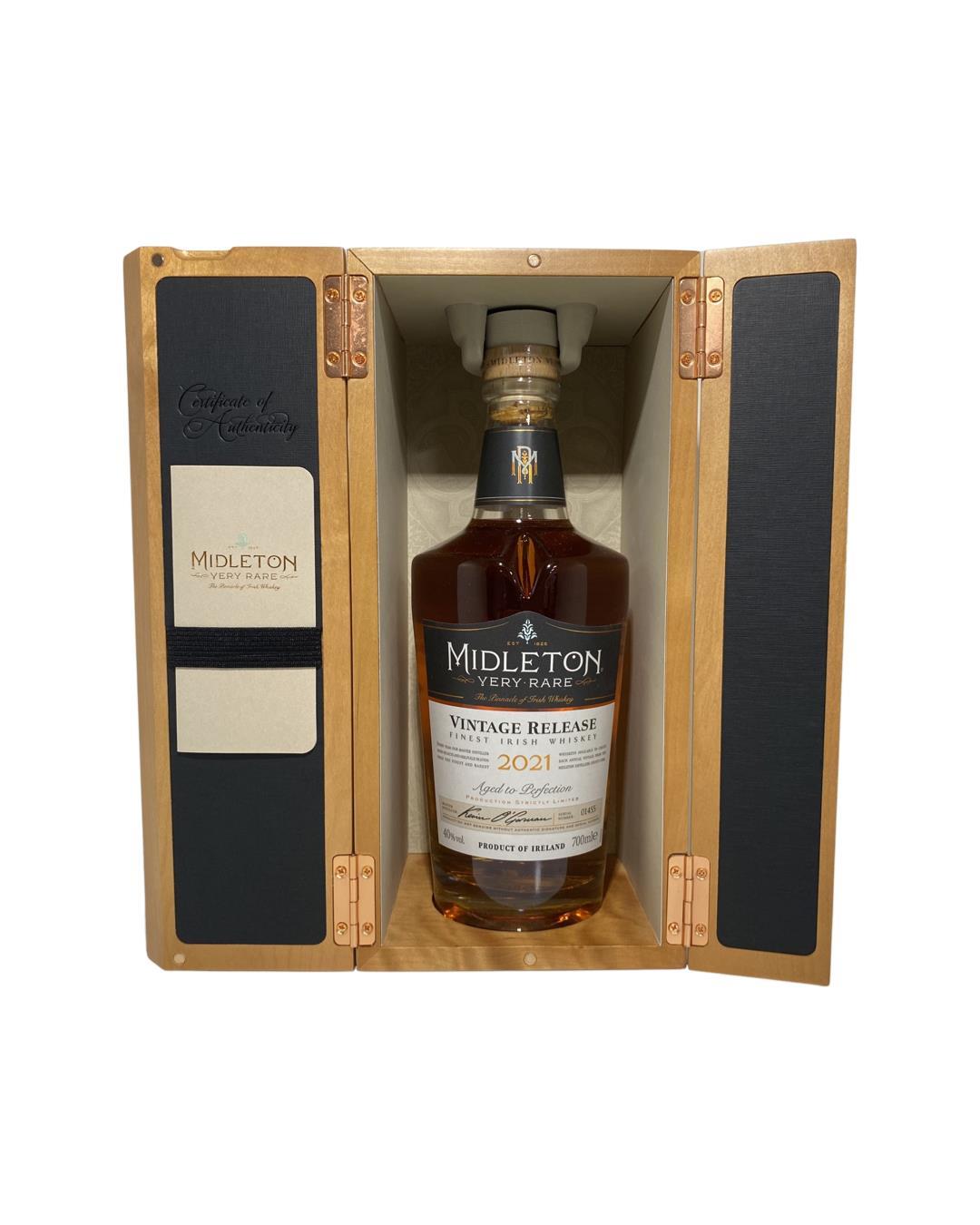 The 2021 edition to Ireland's most premium and beloved whiskey series; Midleton Very Rare. This is the 38th installment and the first release under Kevin O' Gorman appointed Master Distiller of the Midleton Distillery in 2020. Both the bottle and gift box are in very good condition, certificate and distillery invite are also included. Bottle number 1455