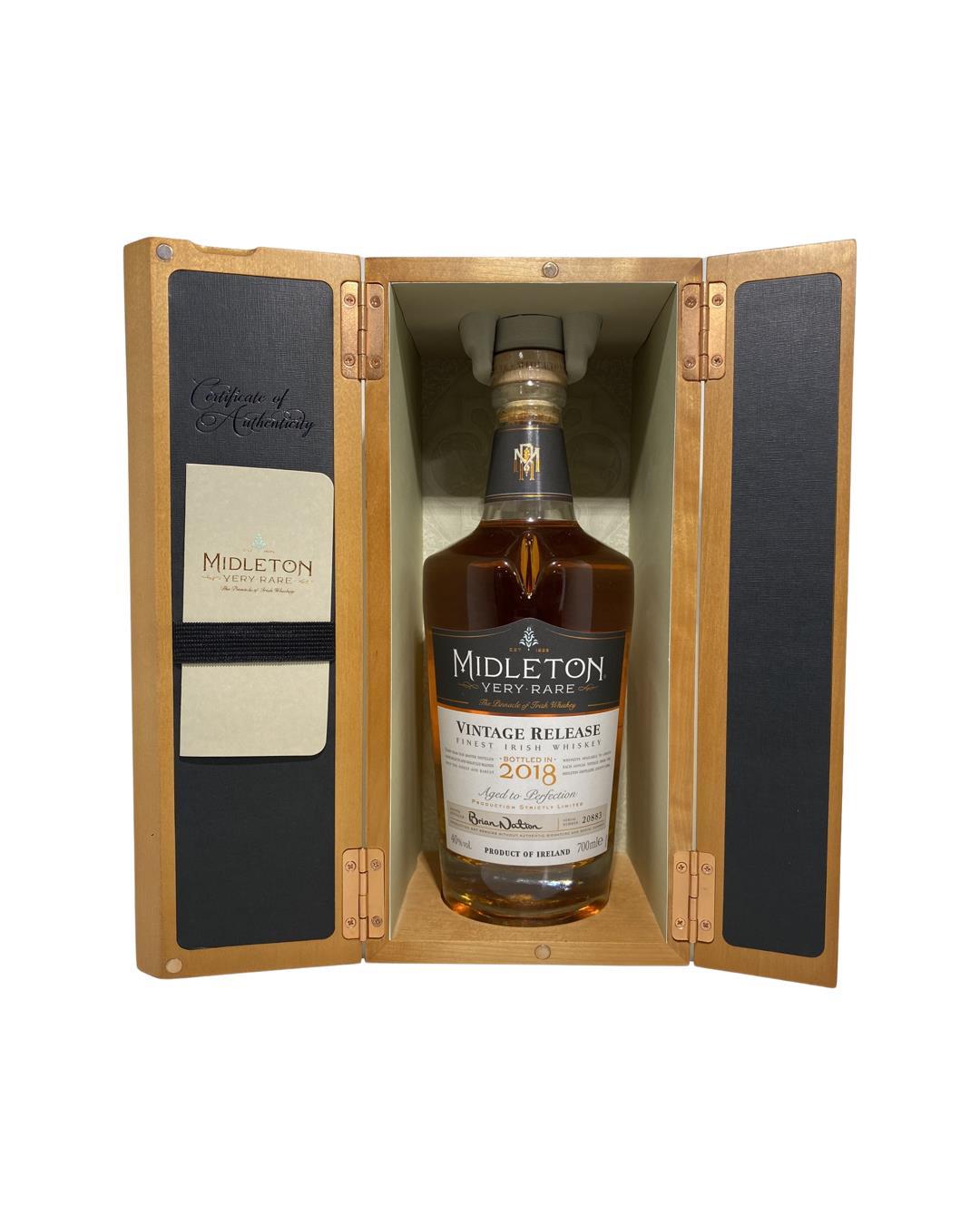 The Midleton Very Rare 2018, is a bottling brought out by the Midleton Distillery in Co. Cork. The ‘Midleton Very Rare’ range was launched in 1984 and a new vintage has been released every year since then. Barry Crockett started off the ‘Midleton Very Rare’ range while he was the Master Distiller of Midleton Distillery, in 2013 Barry Crockett retired from his role of Master Distiller. From 2014 onwards Brian Nation has been creating the ‘Midleton Very Rare’ range, maintaining its role as standard-bearer and pinnacle of Irish Whiskey. The bottle and gift box in great condition also include the cert and distillery invite. Bottle 20883