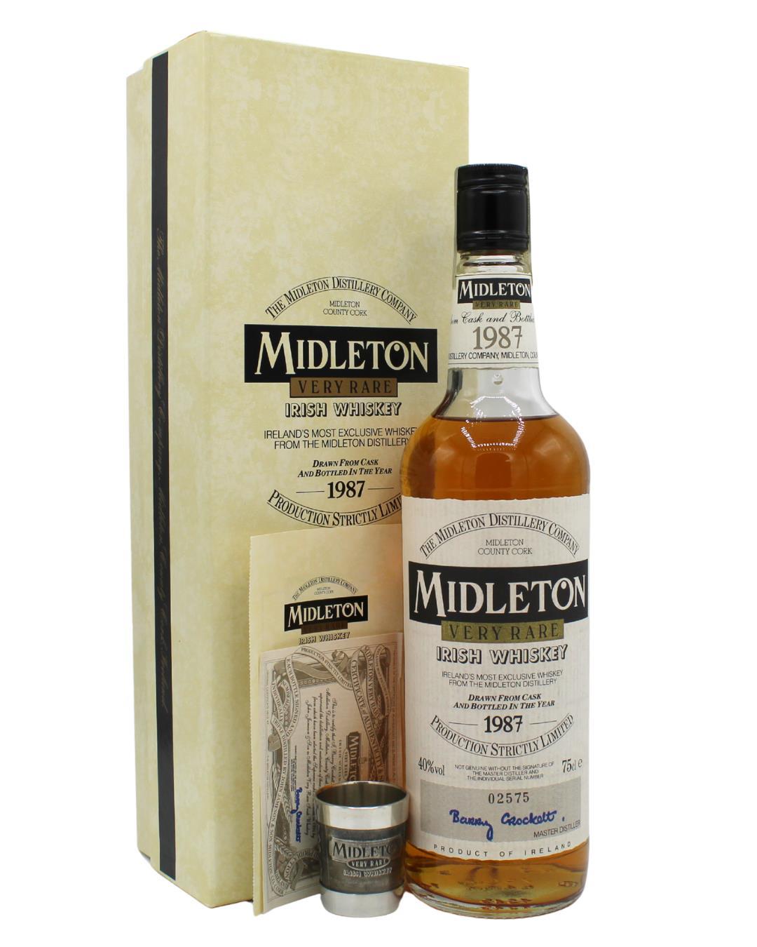 The 1987 release of the Midleton Very Rare collection complete with distillery invitation, certificate of authenticity. This bottle comes with a Mullingar pewter whiskey measure.